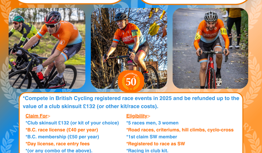 Seacroft Wheelers will pay the cost of entry of a member, into our club events during 2025 – this means… Read More